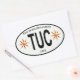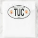 adesivo da cidade com abreviação e data de criação, ícones solares.