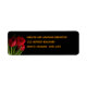 Esta etiqueta de endereço apresenta um buquê de tulipas vermelhas escarlate e folhas verdes sobre um fundo preto puro. Todo o texto pode ser personalizado para suas necessidades pessoais.