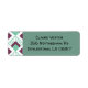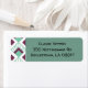 Estas etiquetas de endereço de retorno têm um design de arte de diamantes verdes mariscos com linhas diagonais e diamantes de beringela em um campo de branco.