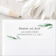 Etiqueta de endereço de casamento botânico com folhas verdes a aquarelas.