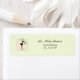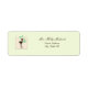 Uma etiqueta de endereço do chá de fraldas que caracteriza uma luz - fundo verde e texto marrom. Ilustração na esquerda de uma cegonha do marrom que leva um pacote verde dentro do quadrado com arco verde na parte superior. Convites e etiquetas de harmonização do chá de fraldas Look for no Paperie de Jill.