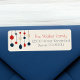 Etiquetas de endereço de devolução de cartão de Natal retrógradas com ornamentos de estilo vintage 70 em vermelho, azul e marfim acima do nome da sua família. Lindos e nostálgicos rótulos de transporte de férias.