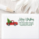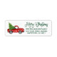 Caligrafia moderna Script Watercolor Vintage Red Truck com Árvore de Natal - Merry Christmas Family Green Address Label