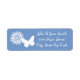 Uma etiqueta de endereço de retorno azul-piscadela é decorada com uma margarida branca e borboleta monarca à esquerda e texto de amostra à direita para personalizar para torná-la sua própria marca. Use essas etiquetas na parte externa de seus convites ou as placas "Obrigado" por um toque elegante, especialmente quando combinado com os outros Daisies e Butterflies em placas Periwinkle, ou troque para as etiquetas padrão de tamanho de endereço para pré-endereçar as placas RSVP para seus convidados.