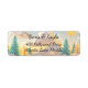 This mailing label design features a stunning winter wonderland scene crafted in a delicate paper-cut style. Softly layered evergreen trees and puffy clouds create a peaceful, festive landscape. The elegant blend of white and cream tones adds depth and warmth, making it perfect for holiday mailings, winter weddings, or seasonal correspondence. A serene and artistic touch for any envelope or package.