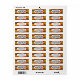 Estas etiquetas de endereço de retorno têm uma design de 70 segundos de retângulos arredondados, um sobre o outro, e círculos em vermelho, amarelo, laranja, castanho e turquesa.