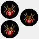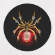 Aranha mecânica, com pá-pá de ouro, engrenagens de latão e uma lâmpada de vidro vermelha sobre fundo preto. Estilo Steampunk.