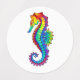 Articulação artificial, brilhante, arco-íris, cavalo de mar poligonal sobre fundo branco. Tatuagem brilhante.