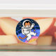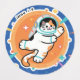 Uma ilustração encantadora de um gato vestido de astronauta, flutuando alegremente no espaço. O gato, com uma face laranja e branca, veste um traje clássico branco e ondas alegremente com uma pata. O fundo se rompe com a maravilha cósmica — estrelas coloridas, planetas e um céu estrelado radiante evocam a emoção da exploração espacial. Esta fusão mimológica da brincadeira felina e da aventura científica torna a imagem simultaneamente deliciosa e imaginativa, perfeita para inspirar curiosidade e sorrisos.