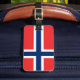 Etiquetas de bagagem de bandeira da Noruega para bolsas e malas. Boa ideia de presente para viajantes de férias.