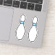 Adesivos com duas pinos de boliche branca com faixas azuis e contornos pretos.