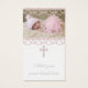 Bonito pérola cor-de-rosa crua com marcas de bomboniere cor-de-rosa. Você pode personalizar esta elegante etiqueta de foto cor-de-rosa cruz bomboniere com suas fotos e detalhes do evento na frente e atrás. Basta perfurar um buraco, adicionar fita ou corda e anexar a seu favor ou presente.