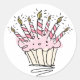 Pequenos adesivos de cupcake para envelopes e caixas. Bonita taça desenhando com gelo e velas. Cor de fundo personalizada. Design de diversão para casa ou padaria.