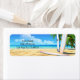 Etiqueta de endereço de retorno mostrada com um impressão de cena de praia. Personalize este item e altere o texto para o seu. Imagem do stock