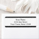 Escrevendo seu endereço repetidamente pode ser uma tarefa, portanto, por que não evitar a queda do escritor e usar essas etiquetas de endereço de devolução pré-impressas personalizadas. Essas etiquetas de endereçamento endereçadas apresentam texto preto em um fundo branco com uma borda listrada em preto-e-branco. Verifique os convites coordenadores, envelopes e outros produtos True Black na nossa loja.