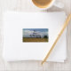 Etiquetas de endereço com uma foto de um céu nublado.