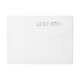 "Descontroladamente uma feliz moderna subtil" na folha de ouro do falso enche a parte traseira deste envoltório em torno da etiqueta de endereço do remetente. Coordene esta etiqueta com o cartão com fotos de harmonização do feriado.