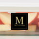 Um design elegante com monograma e nome em estilo de fonte profissional de ouro com borda quadrada de ouro sobre fundo preto. Note que os detalhes da folha são simulados no trabalho de arte. Não será utilizada nenhuma folha de alumínio real no fazer deste produto.