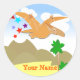 Etiquetas de nome de Dinossauro Pteranodon. Um dino Pteranodon, cor de laranja, bonito e sorridente, numa brilhante paisagem pré-histórica da idade da pedra, com palmeiras, montanhas e vulcões atirando estrelas no céu azul com algumas nuvens brancas em haste com o seu nome. Preencha o seu nome para personalizar o seu autocolante especial de dino com o seu nome! Este adesivo de dinos é totalmente personalizável, adicione texto(s) e imagem. Excelente de volta para os adesivos de desenho animado da escola ou adesivos de presentes de aniversário para o pequeno e grande fã de dinossauros!