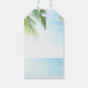 Lindas etiquetas de presente com fundo de praia tropical em aquarela.