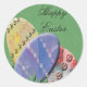 Etiquetas coloridas impressas com ovos concebidos de forma única e saudação do Felz pascoa.