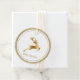 A etiqueta de presente é criada sobre um fundo branco com sotaques de falso brilho, bordas coloridas em ouro mate e texto de Feliz Natal saudando seu receptor de presente com uma imagem dourada centrada de uma rena surpreendente. Cor Branco/tom dourado. Personalize este item ou comprar como está.