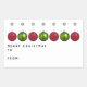 Bonitas e personalizadas etiquetas de presentes de Natal com uma fileira única de Enfeites de natal vermelhos e verdes. Editar texto para personalizar.