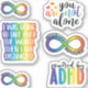 Etiquetas de suporte ADHD Mostre seu apoio e aumente a conscientização do ADHD e da neurodiversidade com 6 adesivos bonitos do arco-íris de ADHD infinito.