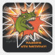 A ggrrr-comeu, coordenando a etiqueta que caracteriza o dinossauro feroz de T-REX contra um fundo preto. (Vetor. O cartão é fácil de personalizar com seus fraseio, opções da pia batismal, do cor da pia batismal, as de papel da forma e escolha de seis tipos de papel.
