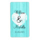 Etiquetas de vinho azul-turquesa para casamentos. Etiquetas de vinho personalizadas com painel de madeira e coração de vintage. Tipografia de na moda para nomes de noiva e noiva. Use como decoração de mesa elegante ou obrigado que você prefere para convidados na festa. Inclui nome ou monograma mais data do casamento. Design de música romântica com impressão rústico. Também é bom para casamentos temáticos na praia.