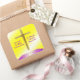 Ilustração original bonito de um design transversal em um fundo amarelo e roxo. Personalize facilmente estas etiquetas animadores com todo o nome, e nome da igreja e da data. Recorde este dia santamente especial com etiquetas feitas sob encomenda para a família e os amigos. Veja outras primeiras etiquetas do comunhão e da confirmação, ímãs, botões, pino, t-shirt, e pastas na loja de MVDesigns.