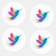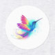 Bright, iridescent, exotic flying hummingbird on white background, painted over with multicolor, watercolor paint. Rainbow hummingbird.