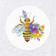 Artistically drawn, flower, honey bee with contrasting colors, yellow, bright, blooming california poppy and blue wild plants on white background.