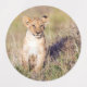 Um jovem leão sentado ao lado de um cupinzeiro. Esta imagem foi tirada num safari no Quênia, reserva Masai Mara Game. © Angelika Stern