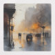 Uma cena cativante mostrando carros em meio a um pano de fundo chuvoso, onde luzes de ruas quentes iluminam o pavimento molhado. Esse design atmosférico encapsula a essência tranquila de uma noite urbana, ideal para entusiastas das paisagens de moody cityscapes.