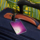 A única coloração roxa desta etiqueta de bagagem (incluindo a precinta de couro) é a de uma fotografia de perto do interior de uma flor silvestre da Glória da Manhã rosa-púrpura. É incrível para nós que esta flor delicada e pequena pode produzir um esquema de cores assim. Também temos bagagem complementar. Obrigados para comprar conosco!