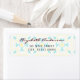 Rótulos de Endereço Caprichosos. Este design inclui elementos em azul, amarelo e rosa, um fundo de azulejos, espirais e bordas inspiradas no design vitoriano. Inclui modelo para personalização.