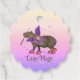 A cute and funny design featuring an adorable capybara fairy holding a magic wand in her mouth, surrounded by sparkling stars. She wears fashionable pink shoes. This playful and dreamy illustration is perfect for girls who love magical animals and fairy vibes.