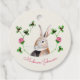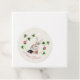 Uma linda etiqueta de trevo botânico e coelho para o presente do seu chá de bebê nas cores verde e rosa