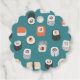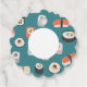 Design de sushi japonês bonito em um fundo verde teal. espaço no vazio no verso para escrever o seu nome ou mensagem.