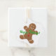 Conjunto de 12 etiquetas de favorecimento quadrado de rico branco com uma imagem de um adorável homem de pão de gengibre com uma gravata verde de arco e botões vermelhos e "Felizes Feriados!" em roteiro verde. O verso é branco com texto personalizável. Veja a coleção inteira de etiquetas de presentes e presentes de Natal na seção FAVORITOS PARA FESTAS.