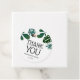 Obrigado a etiquetas para corresponder à coleção de convites do chá de fraldas da selva. Apresentando folhas tropicais de cor aquosa e uma borda tucana colorida. Personalize com o nome e a data de chá da mamãe ou personalize para uma bolsa de aniversário!