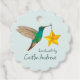 Etiquetas de presente personalizadas com um carregando de beija-flor de cauda rufa.