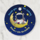 Moon Adventure Birthday Favor Tags (redondo) apresenta um astronauta posando de uma lua crescente, com estrelas ao seu redor. Colocado sobre um fundo de céu estrelado. Texto curvo personalizável acima do astronauta diz, Obrigado por vir". O texto personalizável abaixo diz, "Aniversário de Ethan's 6". Perfeito para anexar favores em uma festa de aniversário para pequenos ventiladores espaciais.