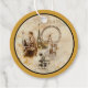 Conjunto de 12 etiquetas redondas de favor com uma imagem de colagens de abas marrons de todas as coisas Paris com uma borda preta sobre fundo dourado. A parte de trás é ouro com borda preta e texto personalizável. Consulte toda a coleção Cancan Favor & Gift Tag na seção FAVORITOS PARA FESTAS.