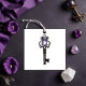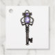 Etiquetas de favor gótico vintage com uma chave antiga estampada com uma pedra preciosa safira e um padrão de renda macia no verso.