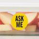 Perguntar-me | Crachá Voluntário Amarelo com o título "Pergunte-me" em fontes de sans negrito preto em fundo amarelo.