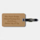 Uma pintura artística de tecido burlap bege e marrom claro é impressa em etiquetas personalizadas para bagagem. Há espaços reservados para Sr. ou Sra., e para informações de contato no verso.
