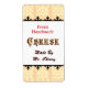 Este rótulo personalizado tem texto personalizado em cima em letras vermelhas achatadas com a palavra Queijo em letras góticas decoradas no meio e no quarto para seu nome no fundo em letras castanhas. Numa vintage borda de recortes de madeira em amarelos e laranja de cheddar para cozinheiros que adoram fazer queijo. Clique em Personalizar para alterar fontes, cores, dimensionamento de elementos e rótulos e muito mais, até salvar seu design para mais tarde.