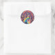 Adesivos em forma redonda com arte desenhada.